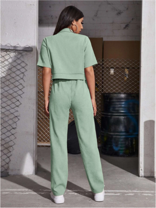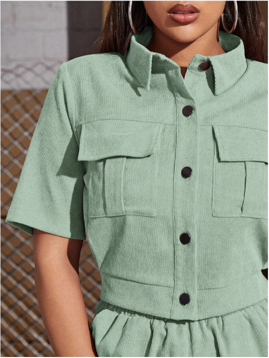 بلوزة وسروال سروال قصير بجيب قابل للطي