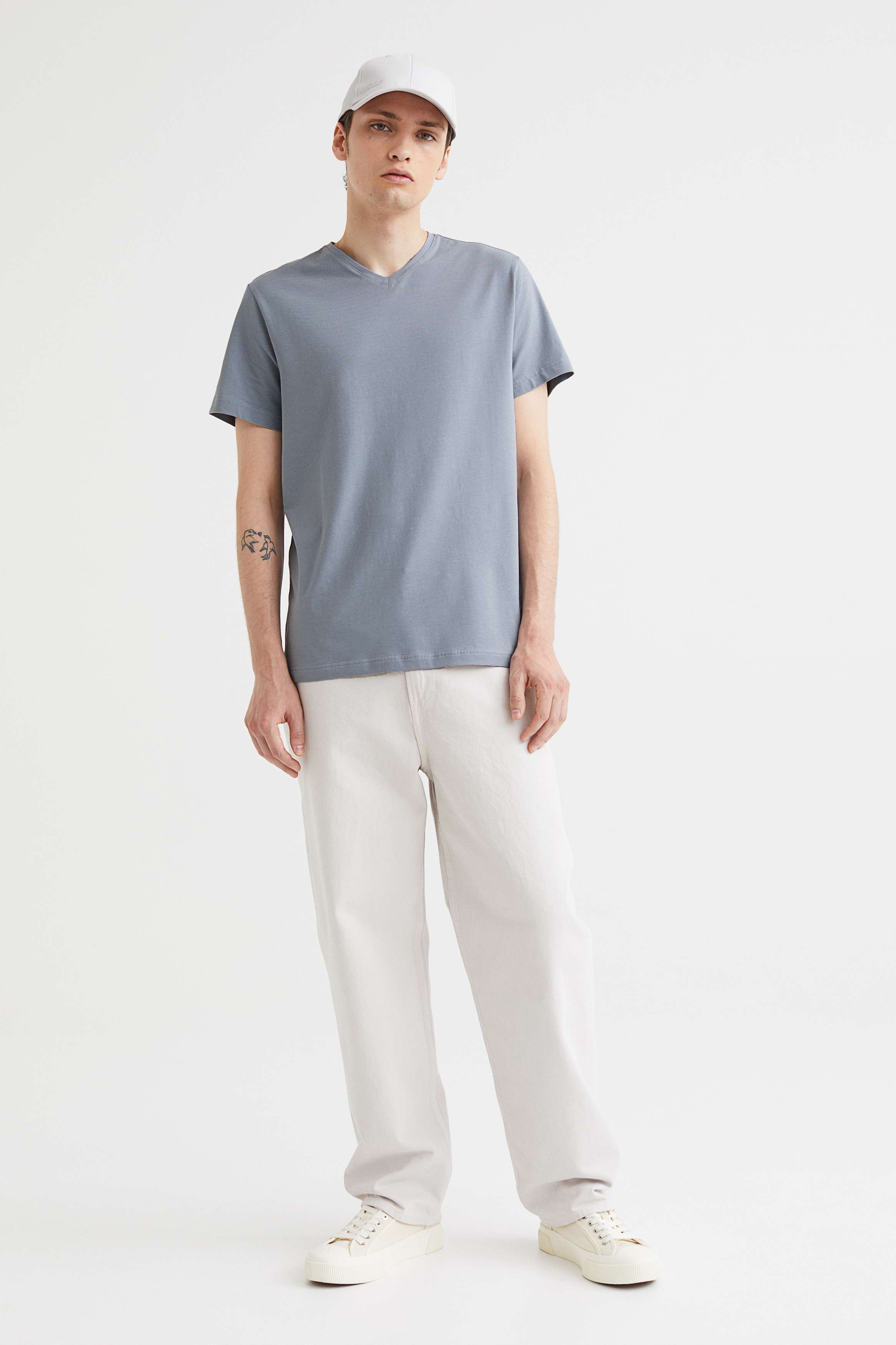 تي-شيرت بقبة V منسوج من القطن المرن والممزوج مع الجيرسيه وبقصة Slim.